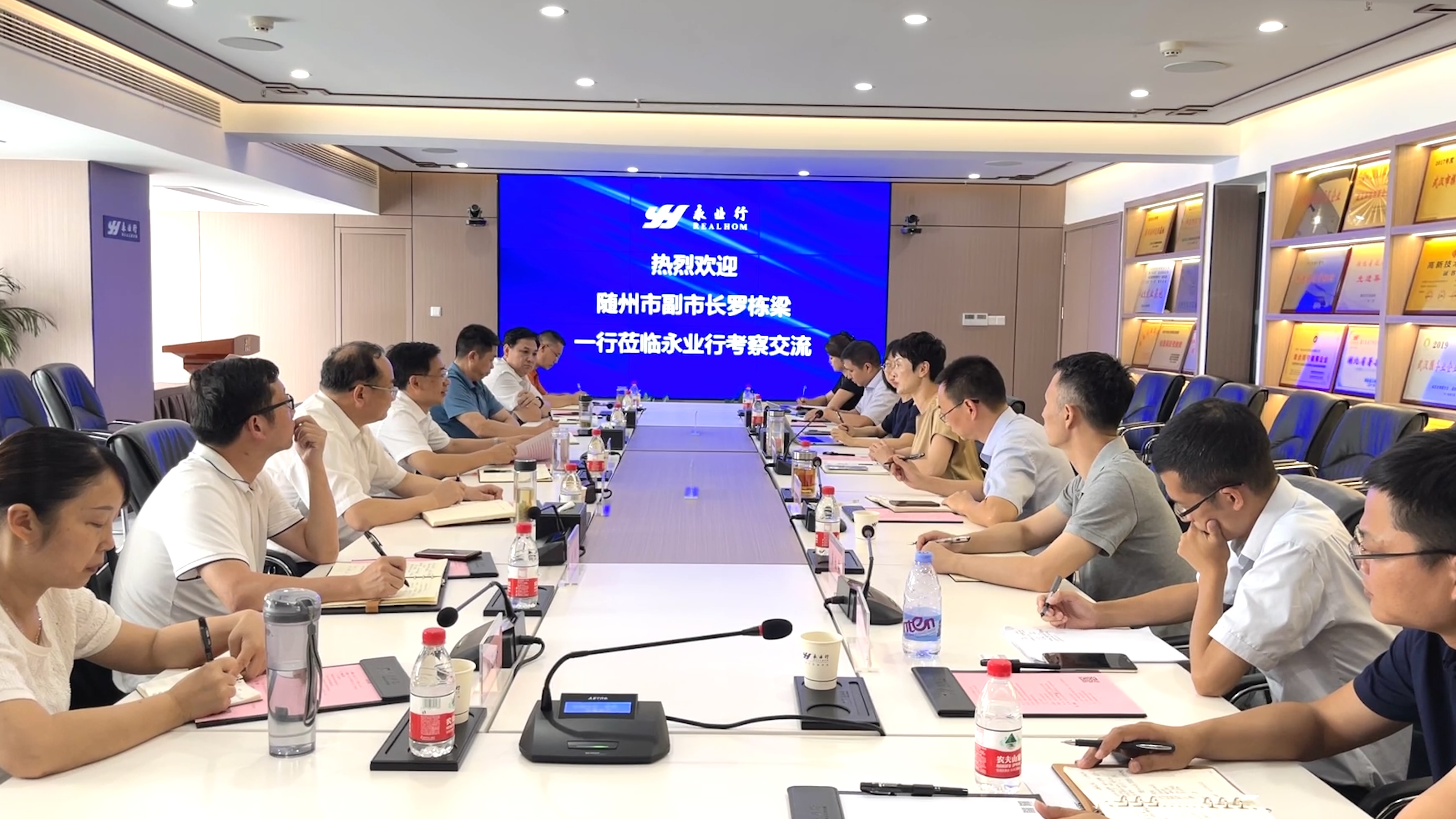 2022年7月1日,随州市政府副市长罗栋梁带领市政府副秘书长王伦建,市自然资源和规划局党组书记、局长黄建平,党组成员、副局长张平等一行莅临永业行考察交流。永业行轮值总裁王琴、助理总裁金建华等热情接待考察组并举行座谈。