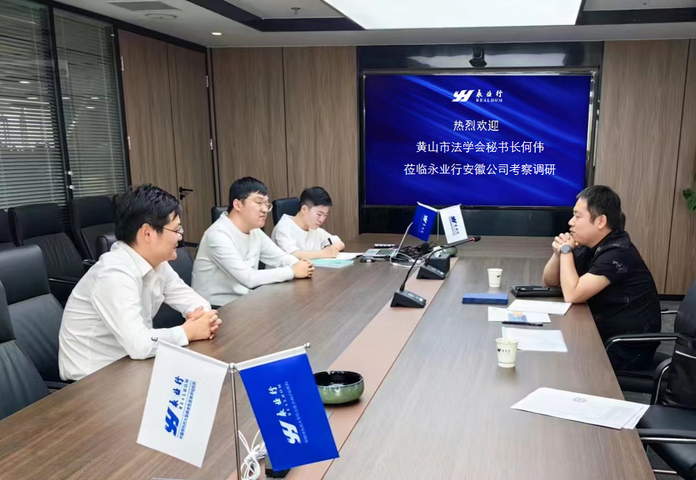 5月22日下午,黄山市法学会理事会秘书长何伟莅临永业行安徽公司(以下简称“安徽公司”)考察调研,安徽公司总经理徐山柱热情接待并参与座谈交流。